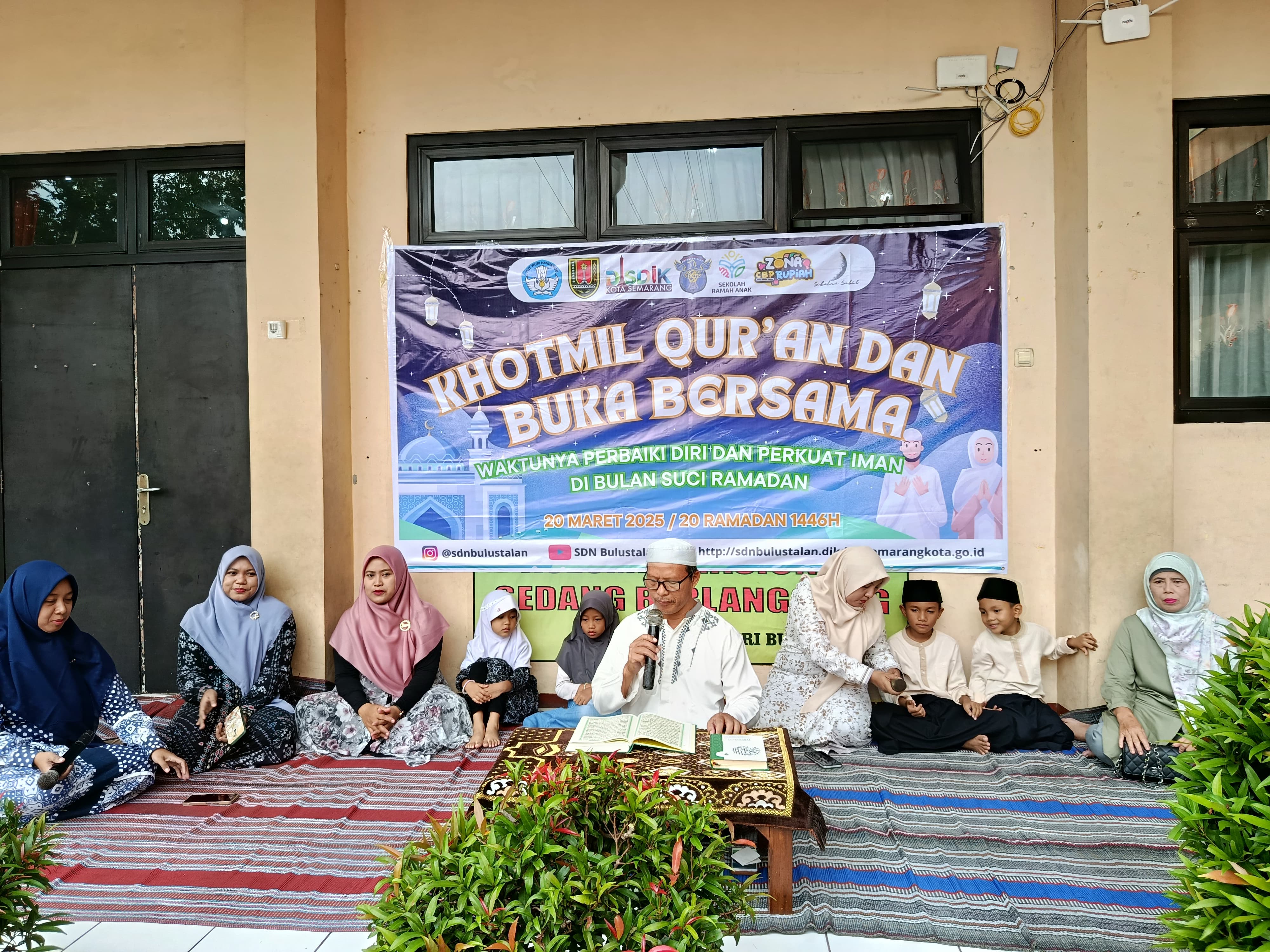 Puncak kegiatan Ramadhan SDN Bulustalan adalah Khatmil Qur’an dan Buka Bersama yang dilaksanakan tanggal 20 Ramadhan 1446 H /20 Maret 2025 yang dihadiri oleh siswa, guru, tendik, dan komite. Acara ini diisi dengan do’a bersama khataman al-Qur’an, sambutan KS dan komite, mau’idzah hasanah, doorprize kuis Ramadhan, hidangan buka puasa Bersama yang lezat, serta salat magrib berjama’ah.