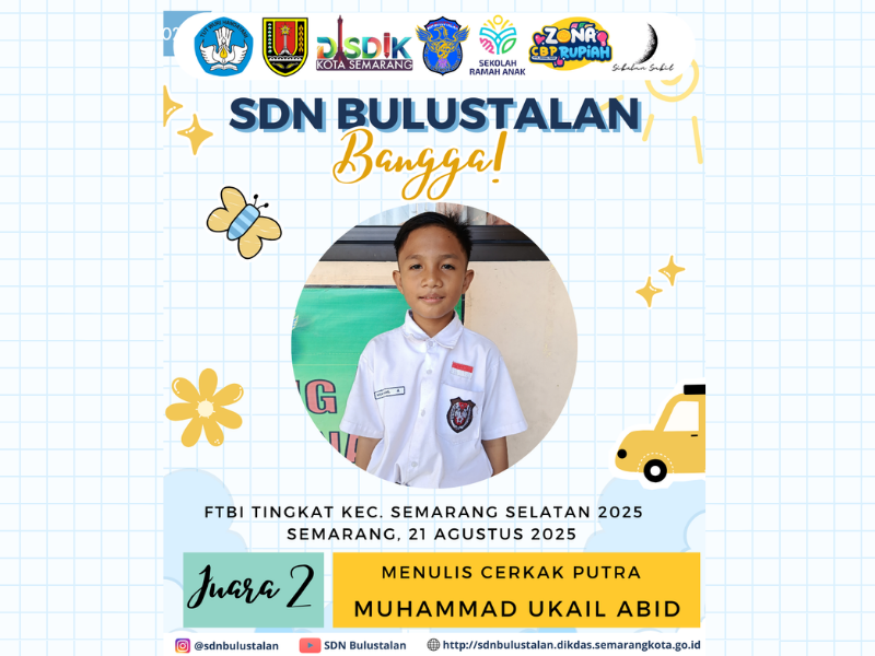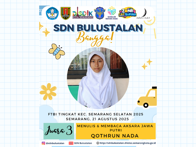 SDN Bulustalan kembali menunjukkan eksistensinya dalam melestarikan budaya daerah dengan meraih prestasi pada Festival Tunas Bahasa Ibu (FTBI) tingkat Kecamatan Semarang Selatan tahun 2025. Kompetisi yang bertujuan untuk memperkuat kecintaan generasi muda terhadap bahasa dan sastra Jawa ini diikuti oleh berbagai sekolah dasar se-kecamatan. Dalam ajang tersebut, perwakilan SDN Bulustalan tampil memukau dan berhasil membawa pulang dua piala membanggakan.